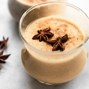 This Dairy-Free Eggnog is made with egg yolks, maple syrup, coconut milk, spices, and rum (or rum extract) for a gluten-free, dairy-free, refined sugar-free