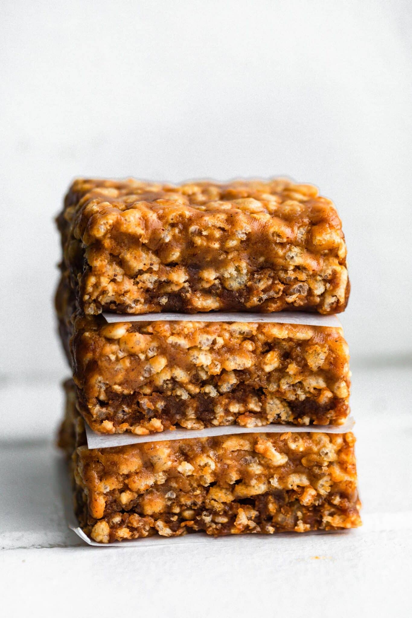 Batter Consistency Tip – The amount of rice cereal you need may vary based on the type of cereal and protein powder used. Start with 3 ½ cups of rice cereal, and gradually add more as needed, up to 4 ½ cups, to achieve the right texture for the bars to set properly. For example, brown rice cereal tends to be heavier, so I only needed about 3 ¾ to 4 cups to reach the perfect consistency. Keep in mind that the bars will firm up more as they chill in the fridge