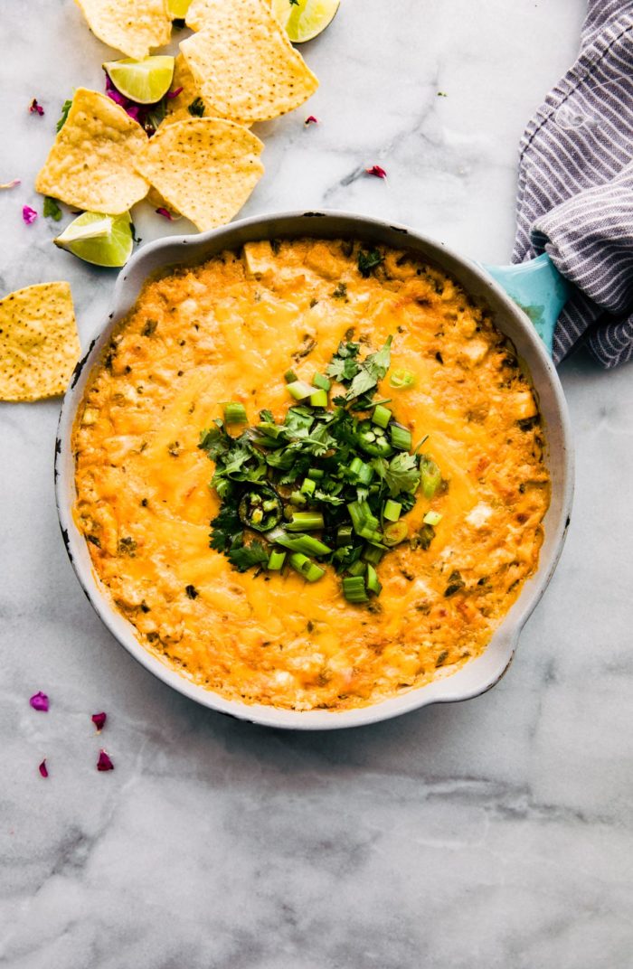 But here’s the thing, most cheesy dips are processed and kinda heavy. Wouldn’t you agree? I wanted to make a lightened up version of those hot dips. And so I did! Oh and it’s football watching folk and husband approved. 😉