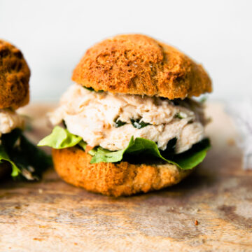 These Mayo-Free Chicken Salad Sliders make for a quick lunch, appetizer, or easy dinner! Made with wholesome gluten-free ingredients, this chicken salad is