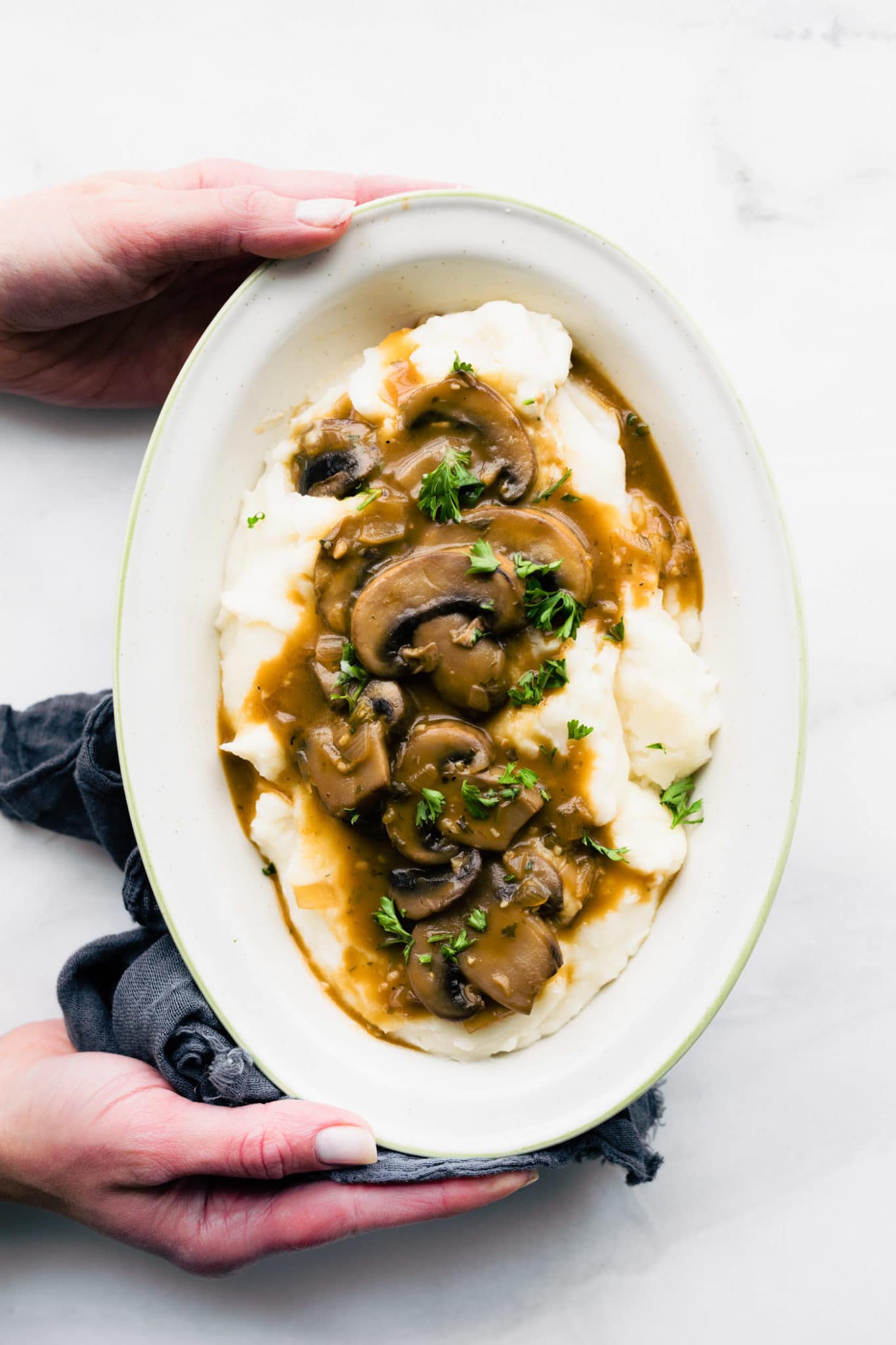 Of course, this recipe contains some staple mashed potato ingredients such as potatoes, seasonings, broth, and spices and is made vegan with a simple swap of dairy-free milk. However, what makes them truly unique is the inclusion of the white bean sage puree made with Cannellini beans!